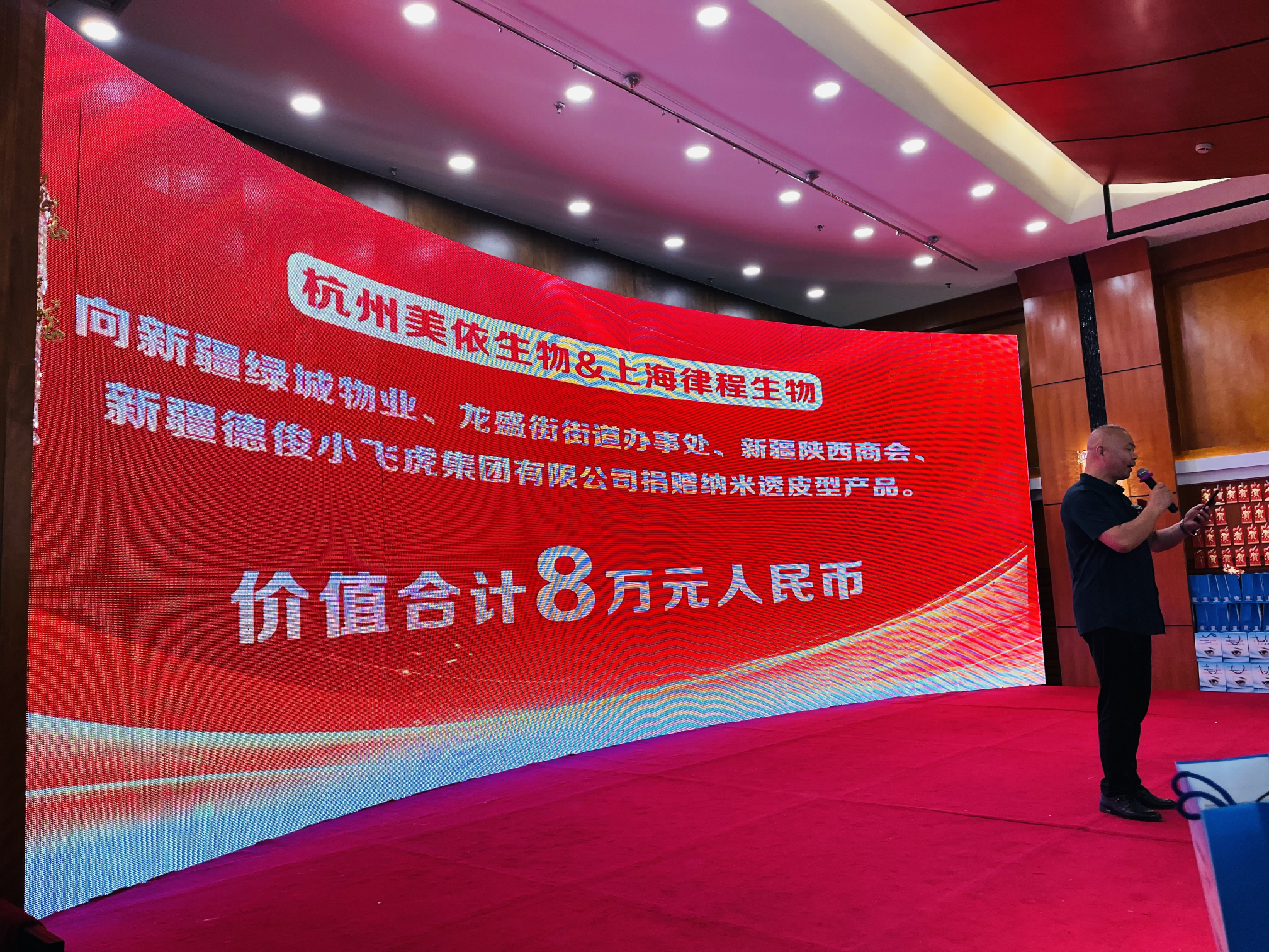 扶弱助殘,大愛無疆。為了幫助更多的新疆人民,杭州美依生物科技有限公司攜手上海律程生物科技有限公司向新疆新疆綠城物業(yè)、龍盛街街道辦事處、新疆陜西商會、新疆德俊小飛虎集團有限公司及部分亞健康困難群眾,捐贈了包括護眼產(chǎn)品——伯科e眼在內(nèi)的納米透皮型產(chǎn)品,價值合計8萬。