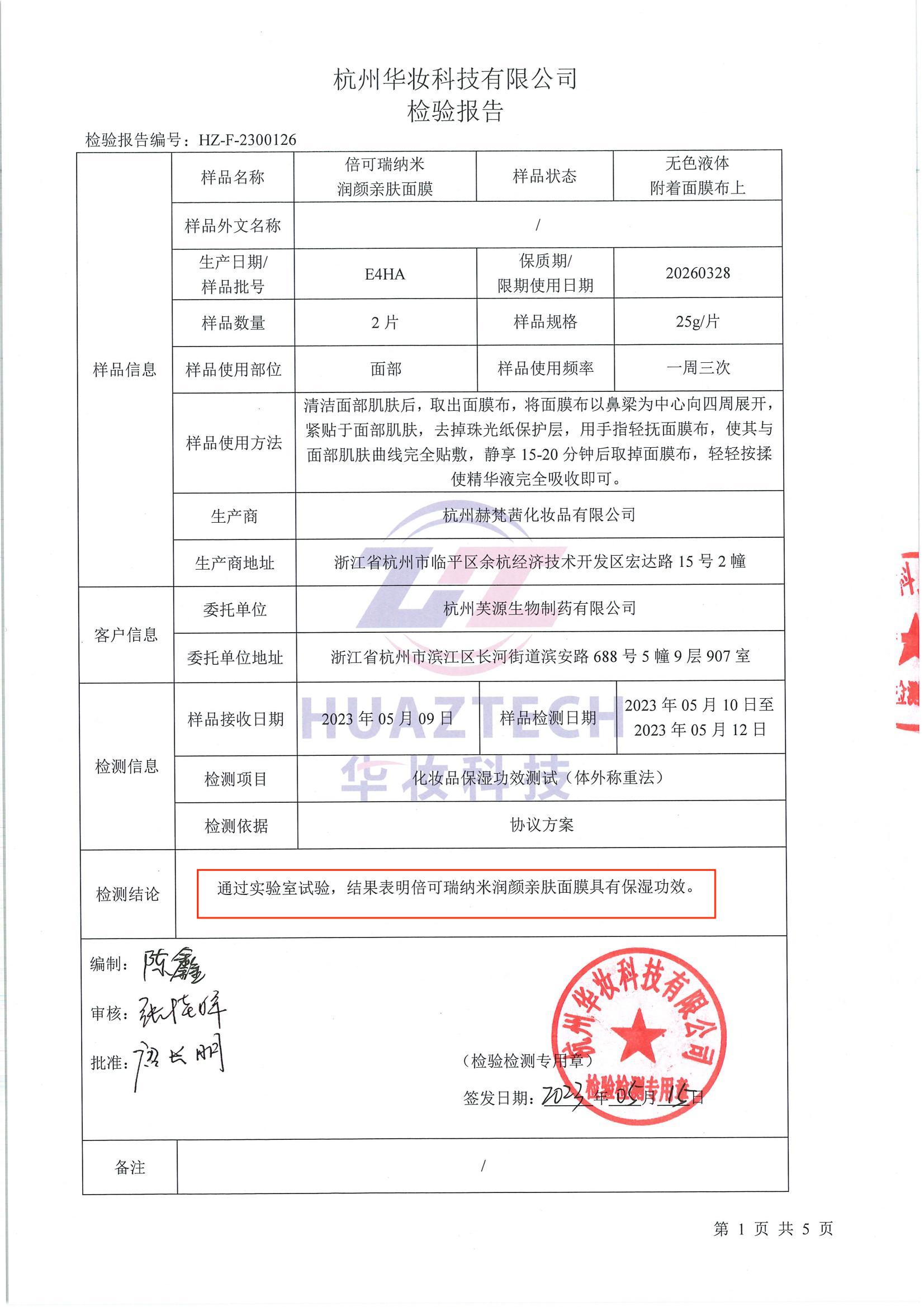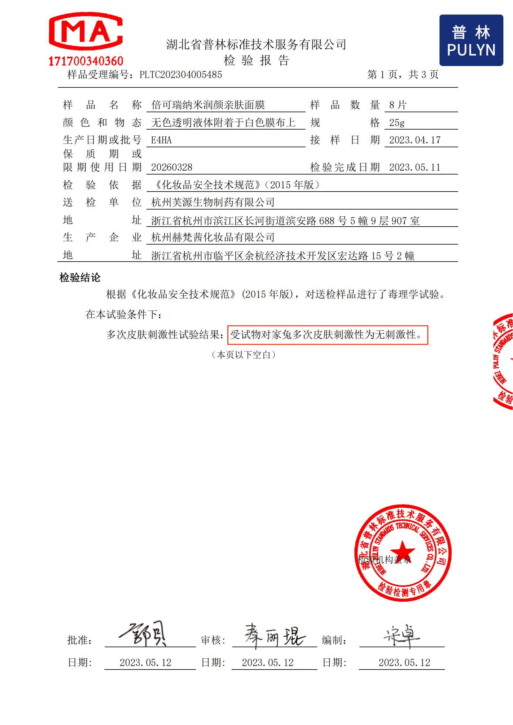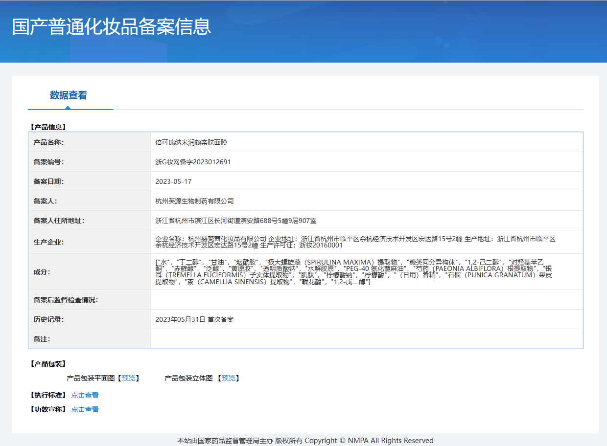 下面,給大家推薦一款很安全、高科技、高品質的“百姓面膜”——倍可瑞®納米潤顏親膚面膜。該產品經過嚴格的質量把控,層層的安全保障審查,擁有一套齊全的產品質量檢測報告,無任何重金屬、激素、菌落或甲醛超標問題,安全無任何副作用。經國家藥品監(jiān)督管理局審核全項目合格備案通過,功效檢測報告合格有效通過,這款面膜安全有效,消費者可以放心購買。