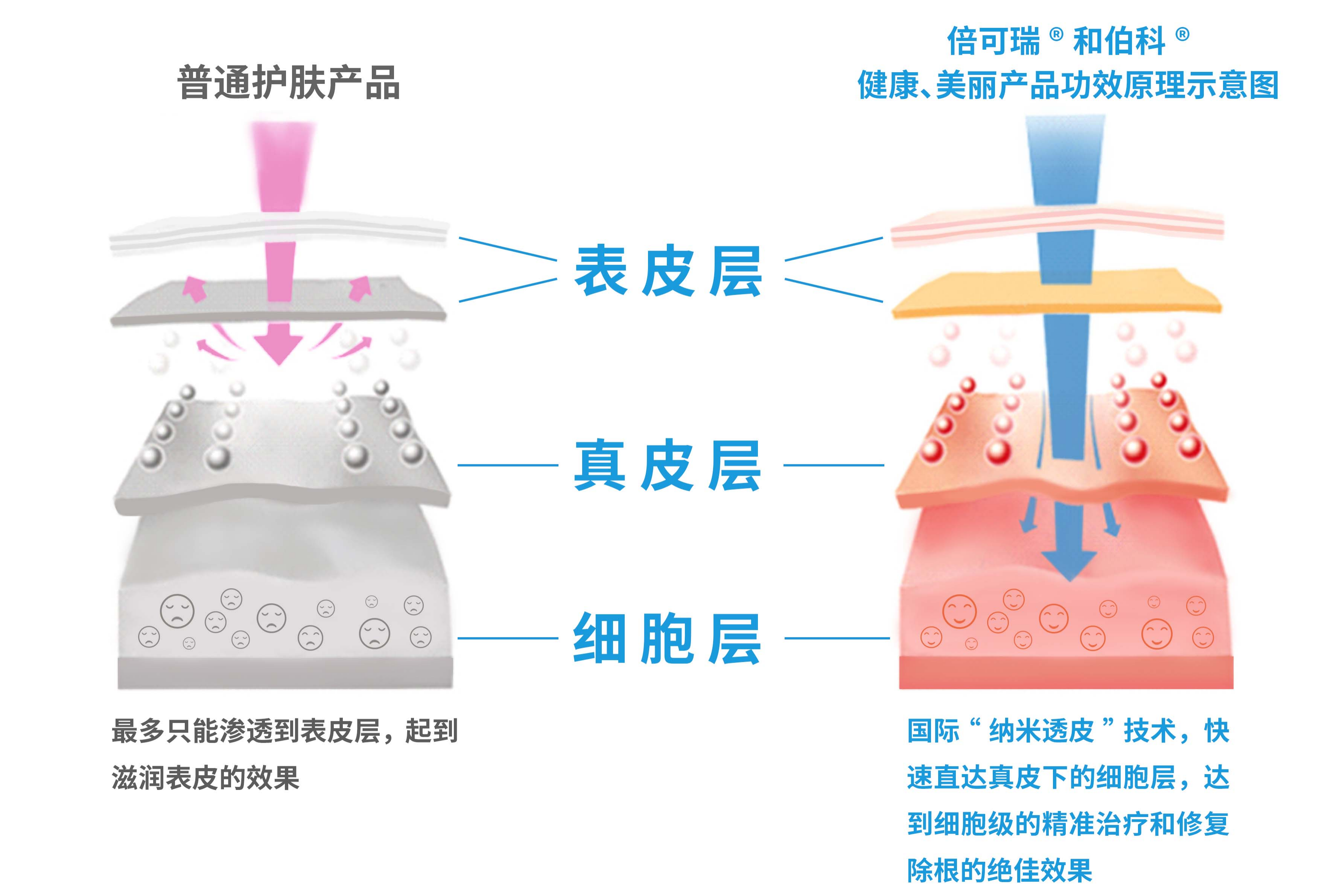 倍可瑞®產(chǎn)品與普通護(hù)膚品吸收對(duì)比圖