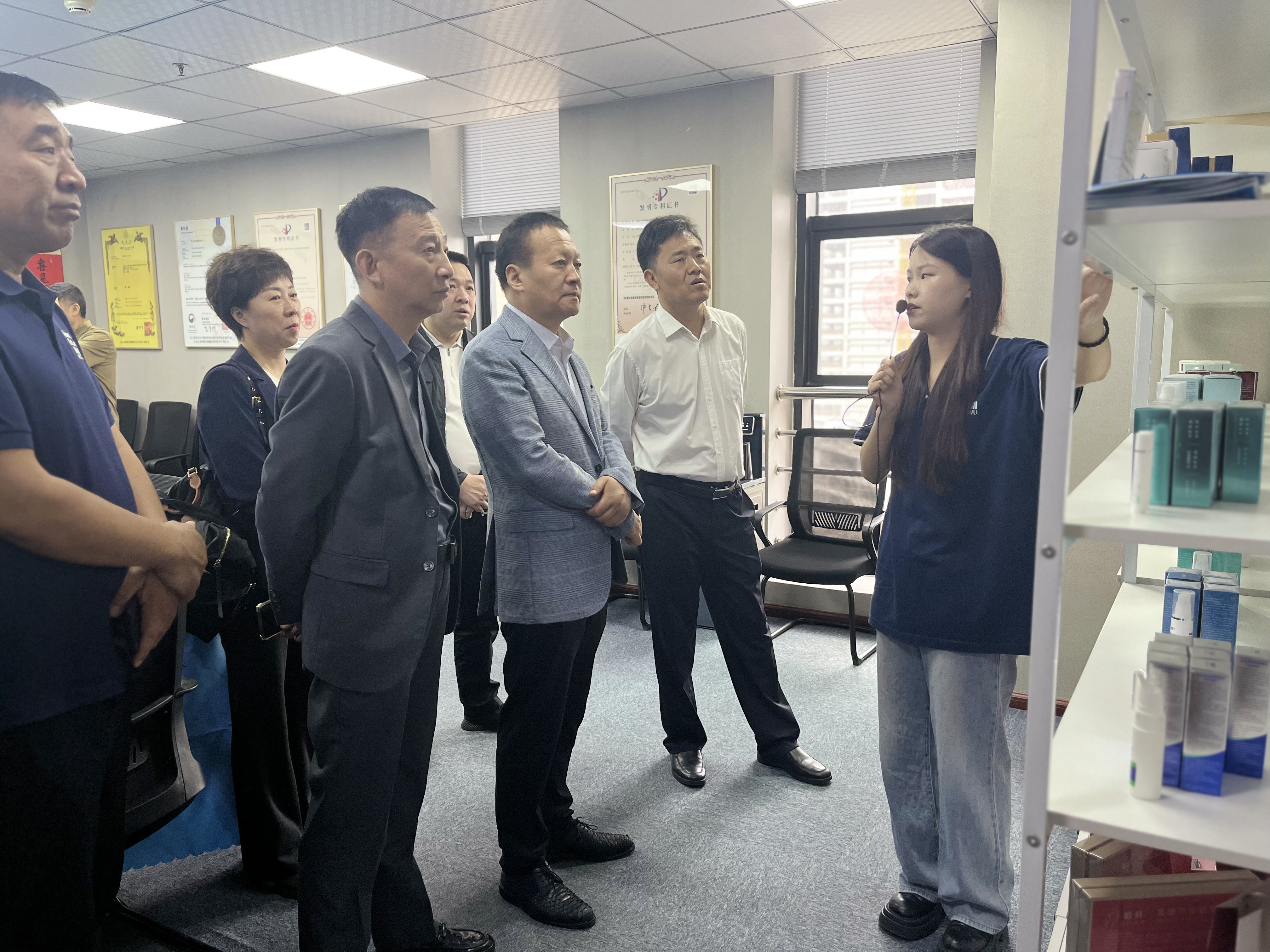 作為國家級高新技術(shù)企業(yè),美依生物以自主研發(fā)的"納米透皮吸收技術(shù)平臺(MLNTD®)"為核心競爭力,構(gòu)建起涵蓋護(hù)膚品、保健用品及醫(yī)療器械的多元化產(chǎn)品矩陣??疾靾F(tuán)實(shí)地走訪企業(yè)榮譽(yù)中心、技術(shù)演示區(qū)及產(chǎn)品展示區(qū),詳細(xì)了解技術(shù)原理、生產(chǎn)工藝及市場應(yīng)用情況。張振鋒同志現(xiàn)場了解產(chǎn)品后表示,“企業(yè)突破傳統(tǒng)口服給藥的技術(shù)瓶頸,將納米透皮技術(shù)與傳統(tǒng)中草藥深度融合,這種‘減口服、增外用’的創(chuàng)新,既降低了肝腎代謝負(fù)擔(dān),又拓寬了中藥在慢病管理、居家康養(yǎng)等場景的應(yīng)用空間。”