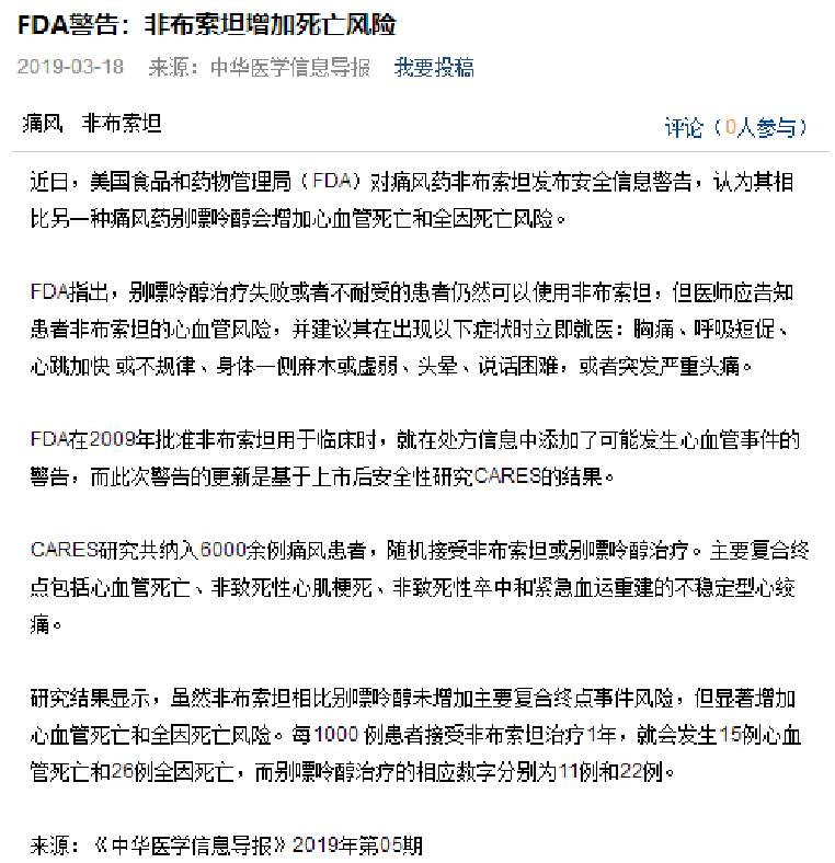 有研究表明,治療痛風(fēng)的口服類藥品會誘發(fā)心血管死亡,增加全因死亡風(fēng)險(xiǎn)!