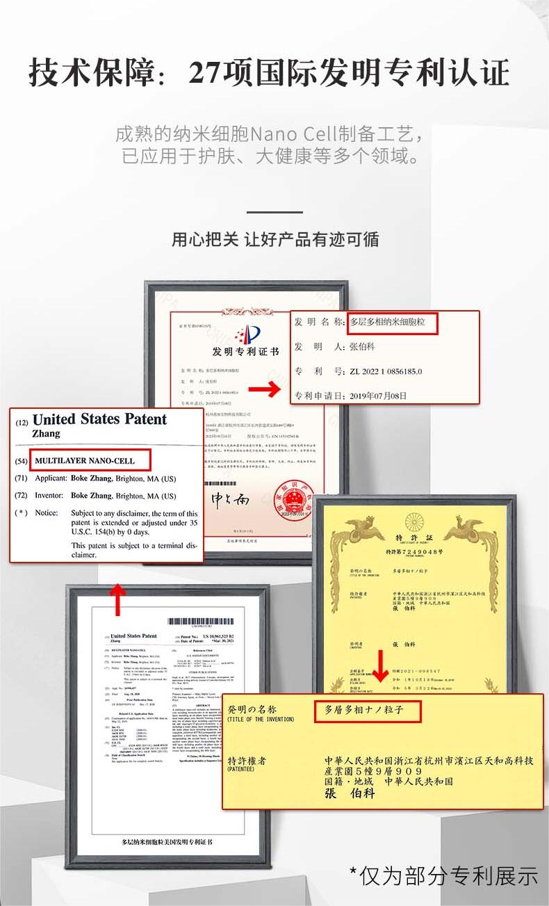 那么,伯科®是如何實(shí)現(xiàn)產(chǎn)品效果的呢?纖體塑形健美液采用了國(guó)際尖端的納米透皮吸收技術(shù)(MLNTD®),而該項(xiàng)技術(shù)已在中國(guó)、美國(guó)、日本、韓國(guó)等多個(gè)國(guó)家和地區(qū),共計(jì)獲得27項(xiàng)國(guó)際發(fā)明專(zhuān)利。